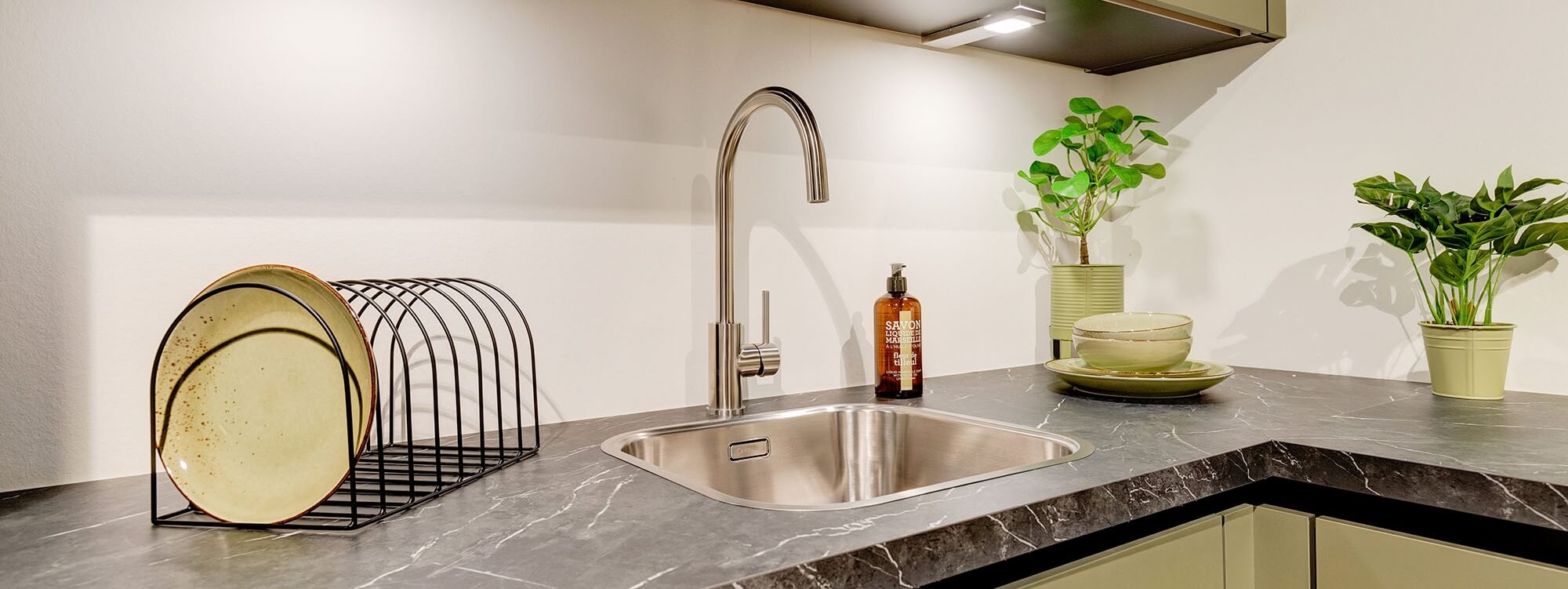 Wanneer je de spoelbak en/of kraan regelmatig schoonmaakt, voorkom je dat er kalkaanslag vormt en vuil zich ophoopt op en rond spoelbak en/of kraan. Neem de spoelbak en/of kraan minimaal een maal per week af en neem de kraan ook goed mee tijdens de schoonmaak van de keuken. Door alles in je keuken goed te onderhouden, voorkom je dat er permanente vlekken vormen op de oppervlakten en blijft het schoonmaken een kleine klus.